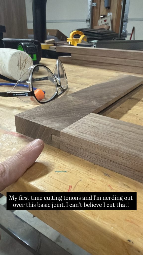Once the boards were milled to size, we cut grooves along the inside edges of the rails and stiles to hold the center panels. Then, we cut tenons on the ends of the rails so they would fit into the grooves in the stiles, creating a strong mechanical joint.
