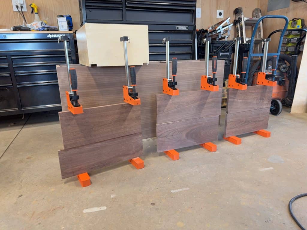 Next, I turned my attention to the drawer fronts. The boards I had on hand weren’t quite wide enough for the drawer fronts I needed, so I glued up a couple to create wider panels. This technique is called a panel glue-up, where boards are joined edge-to-edge to create a wider panel.
