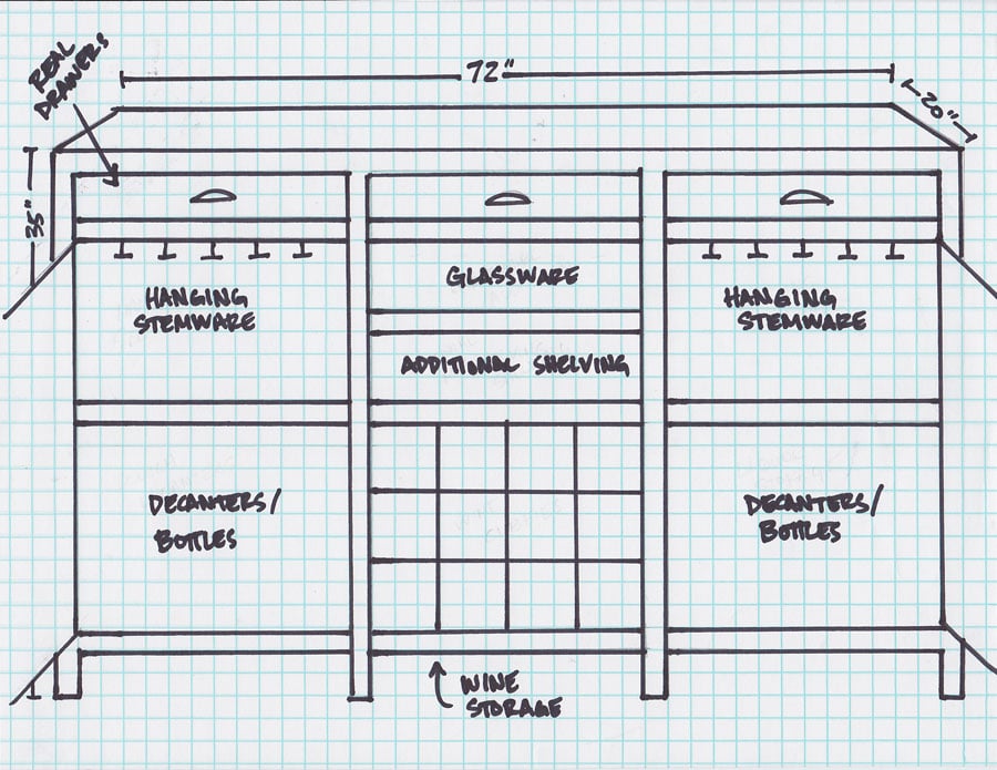 Okay, so let me give you a quick rundown before we jump with both feet in: in case you missed it, here’s part 1 and part 2 of the Bar Cabinet Brainstorm.