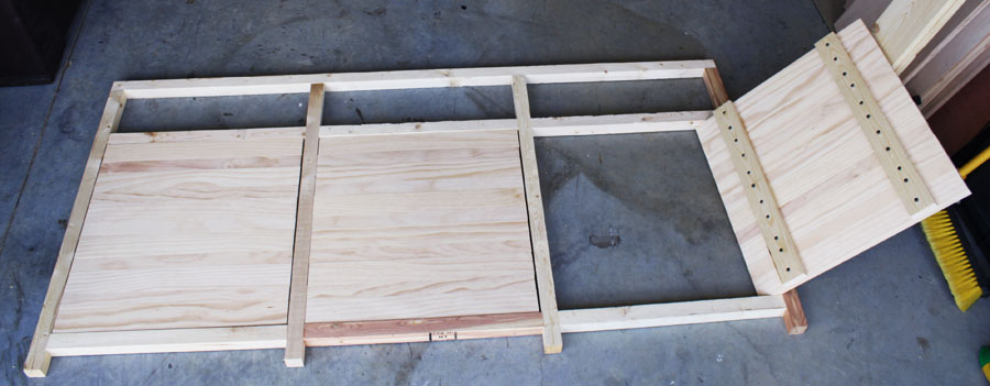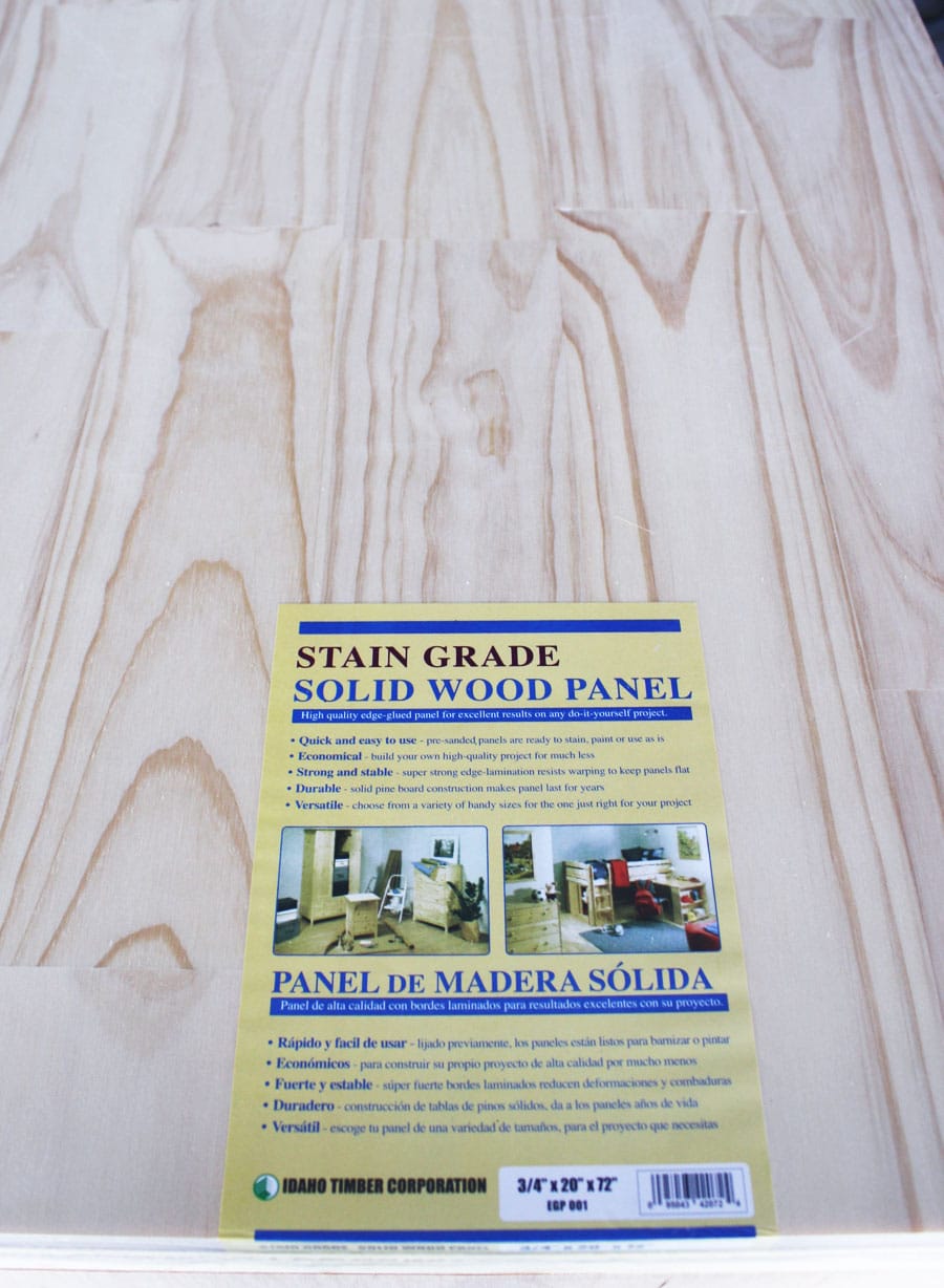 I had the lumber guys rip my plywood for me, but their measurements weren’t exactly accurate, so I was left with a board that didn’t fit on the top correctly. So, instead of purchasing another piece of plywood and making the same mistake, I bought this ready-cut solid wood panel: