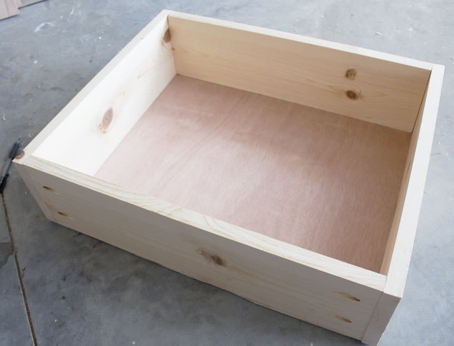 Then I built the drawers, putting the pocket holes on the outside because they would be hidden by the drawer faces.