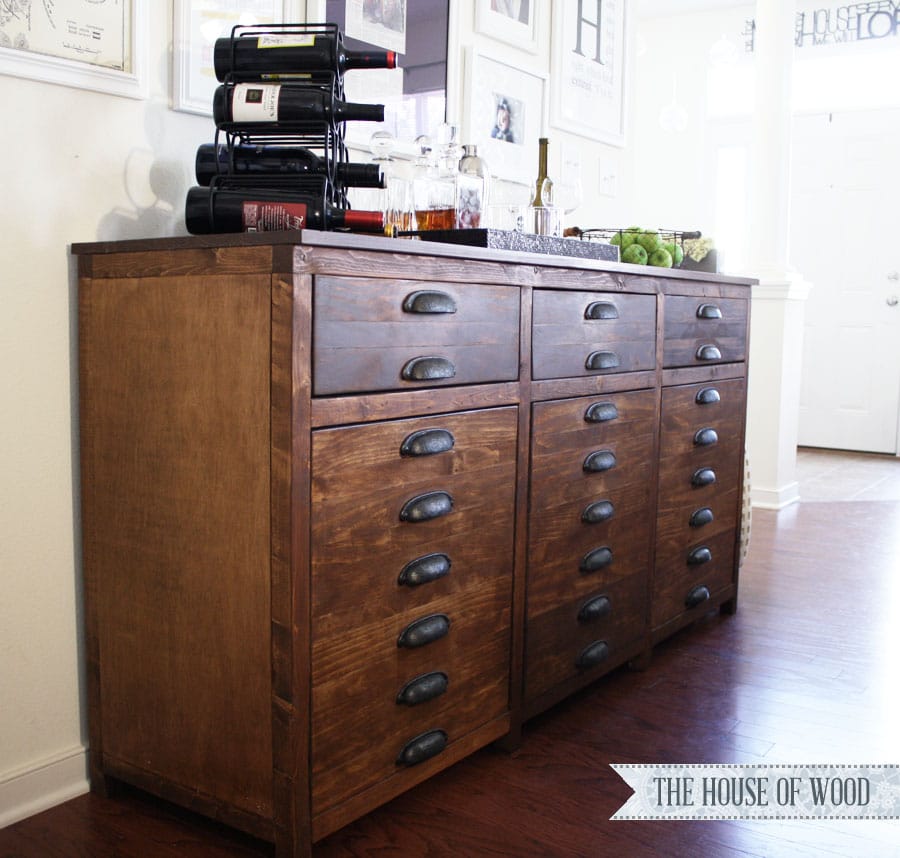 But sadly, I am not a plan-maker. I’m just an idea girl in desperate need of Ana White’s expertise and guidance. So I called on my sweet friend and she came to my rescue with these amazing plans! Be sure to pop over to Ana’s site – you can get the free plans to make your own Restoration Hardware knockoff Printmakers Sideboard! Pretty awesome, right?!