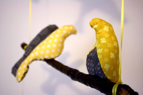 Super cute!!! if the birdies keep slipping & ending up upside down on the branches, you could always put a little dab of fabric glue underneath them to keep them in place. i love the colors too! i'm using alot of dark/mustard-y yellow in our nursery too, since we don't know what we're having, but with brown, orange & green accents. our bedroom is a silvery grey tho, & i'm thinking on putting some yellow accents in it….i just love the combo of the two! it's been awesome to follow your blog & see eggrolls room come together!