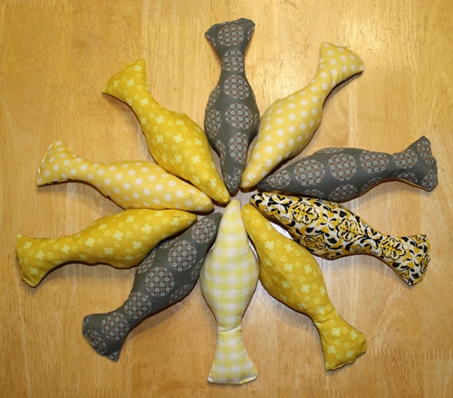 Love the mobile! I will try to make some in Orange, green and blue for my baby boy's room! I love the gray fabric you used. My sister made me a nursing cover-up out of it and I smile every time I use it.