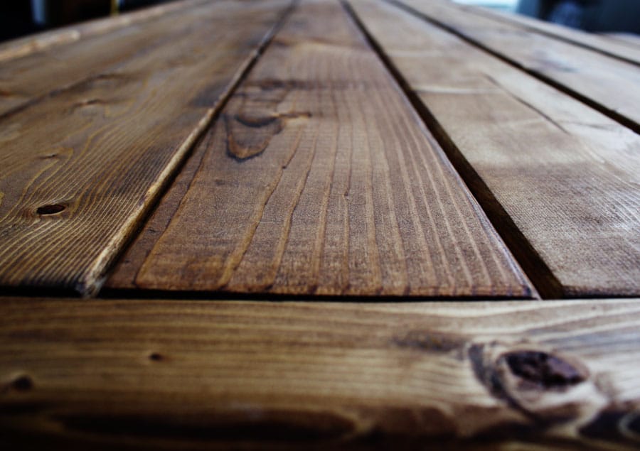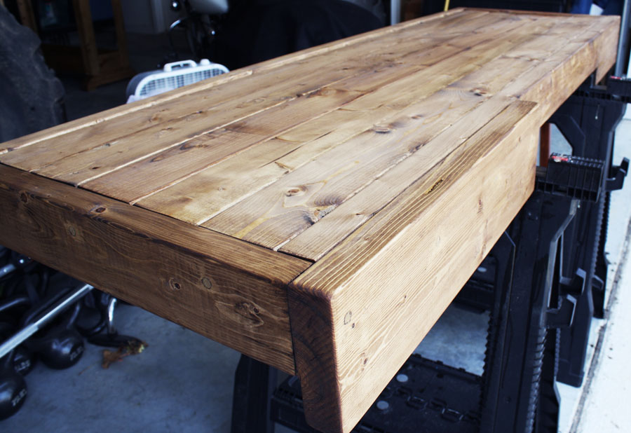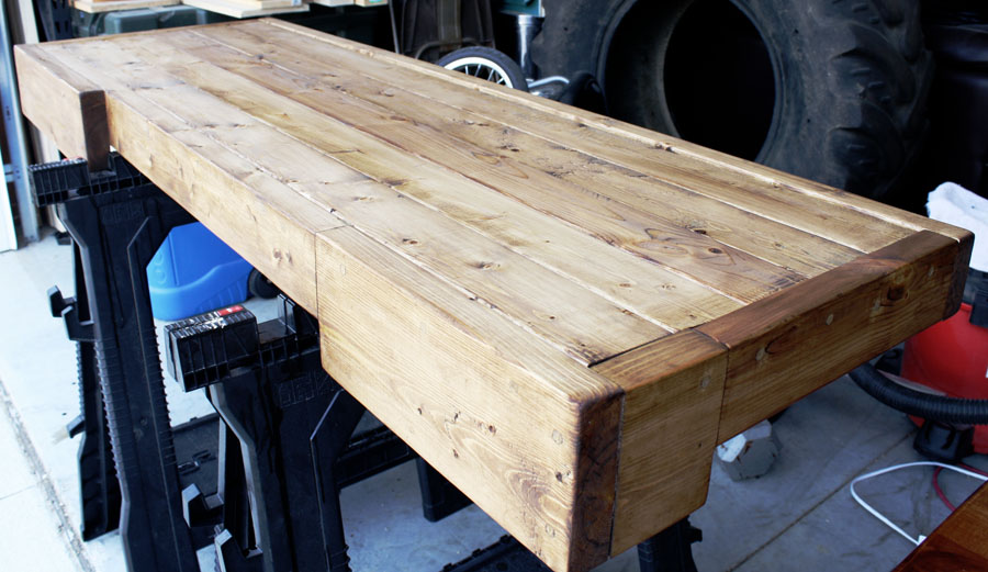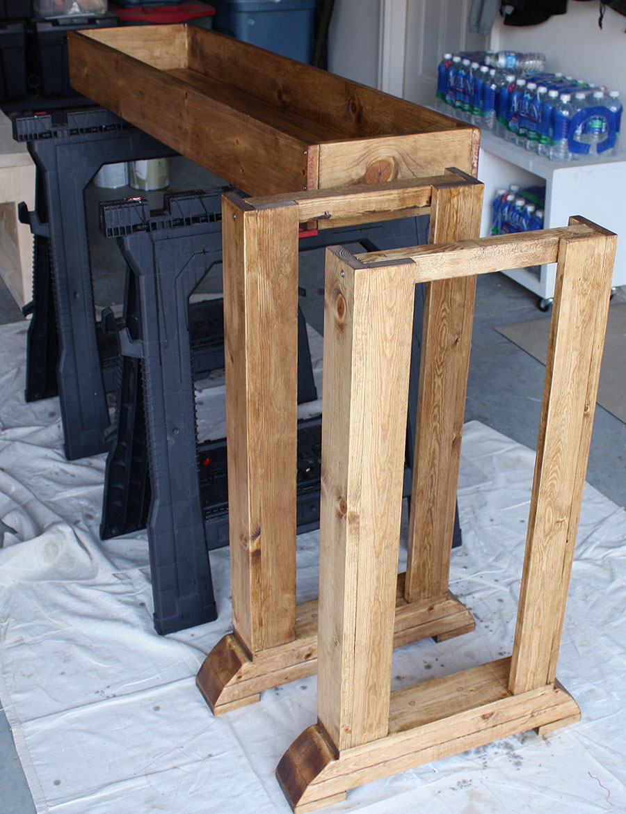 Then, after sanding and staining the table top,