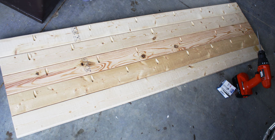Then I joined five 2x4s together with pocket hole joints underneath for the table top:
