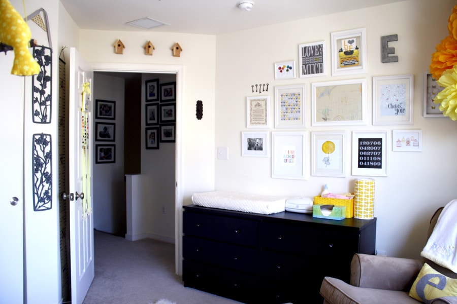 I LOVE the art work with the ABC’s that ends with “E” is for Evelyn. (It’s yellow and gray). Did you make that?