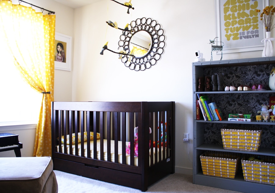 It’s one of my favorite spaces in our home, mainly because Evie and I spend a ton of time reading, daydreaming, singing, playing, and napping in here. It’s a bright, cheery, magical place where anything is possible. So, without further ado… welcome to Evie’s nursery!