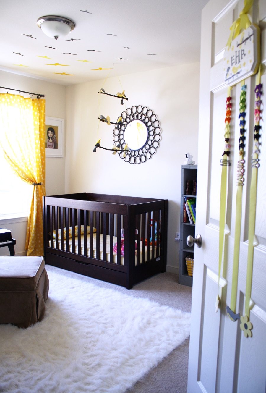 One of the first things I made for Evie’s nursery was her bird mobile (which was extremely tedious for a novice like myself) and I love how these little birdies watch over her while she sleeps: