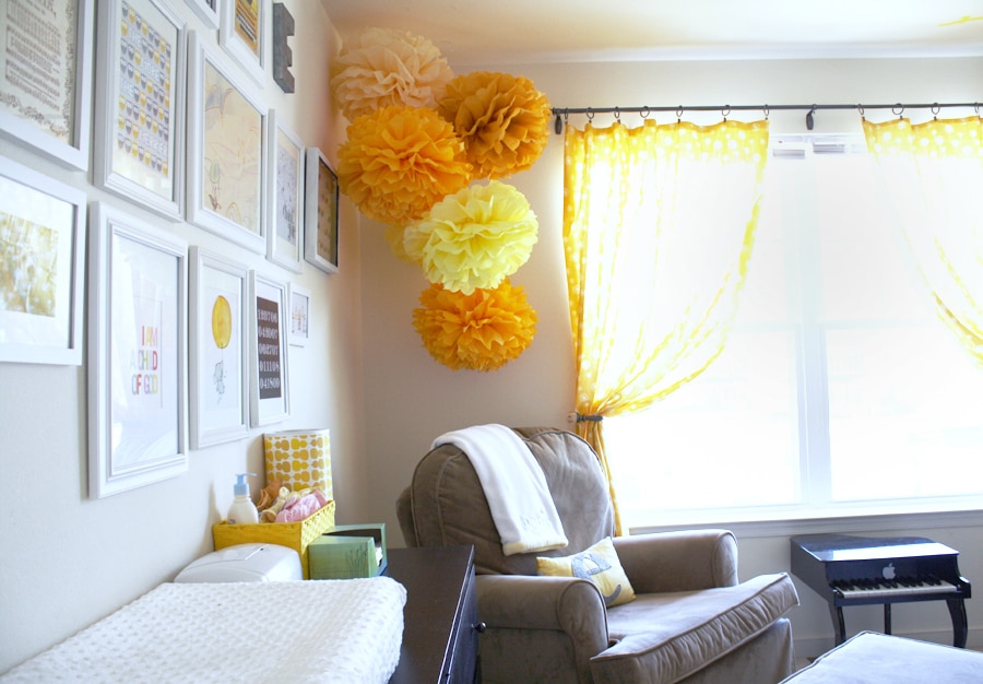 The nursery is beautiful!! It seems like such a fun space, yet calm at the same time. I like the poufs in the corner. Are they made of tissue paper or did you use something different?