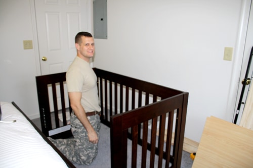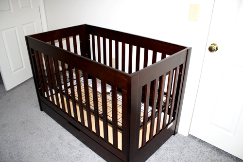 Our crib arrived yesterday (thank you super fast and free Amazon shipping!) and we were so excited to put it together. We’re really pleased by the quality of the crib, made entirely of solid wood, with a gorgeous non-toxic finish, strong and stable… we can rest easy knowing our little Eggroll will be safe and sound in her crib. And it matches the dresser/changing table and bureau beautifully!