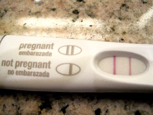 I waited till I was about a week late, and we took the pregnancy test today… I say “we” because Adam was right there with me, sitting on the bathtub while I peed on the stick. He set the stopwatch and we waited. Longest 3 minutes of our lives, let me tell you. We were so giddy and excited, but I kept telling myself, ‘if it’s negative, that’s okay. It’s only the second month we’ve been trying… we can try again next month.’
